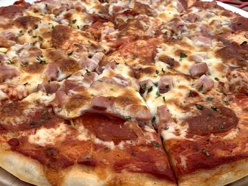 Red Sauce; Salami, Ham, Capicola, and Pepperoni; & Mozzarella